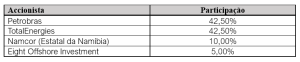 Segundo o comunicado emitido pela petrolífera estatal brasileira, citado pela agência Efe, a transacção redefine a composição do consórcio operador da área. Com o desfecho do negócio, a estrutura accionista do Bloco 2613 passa a ser a seguinte: